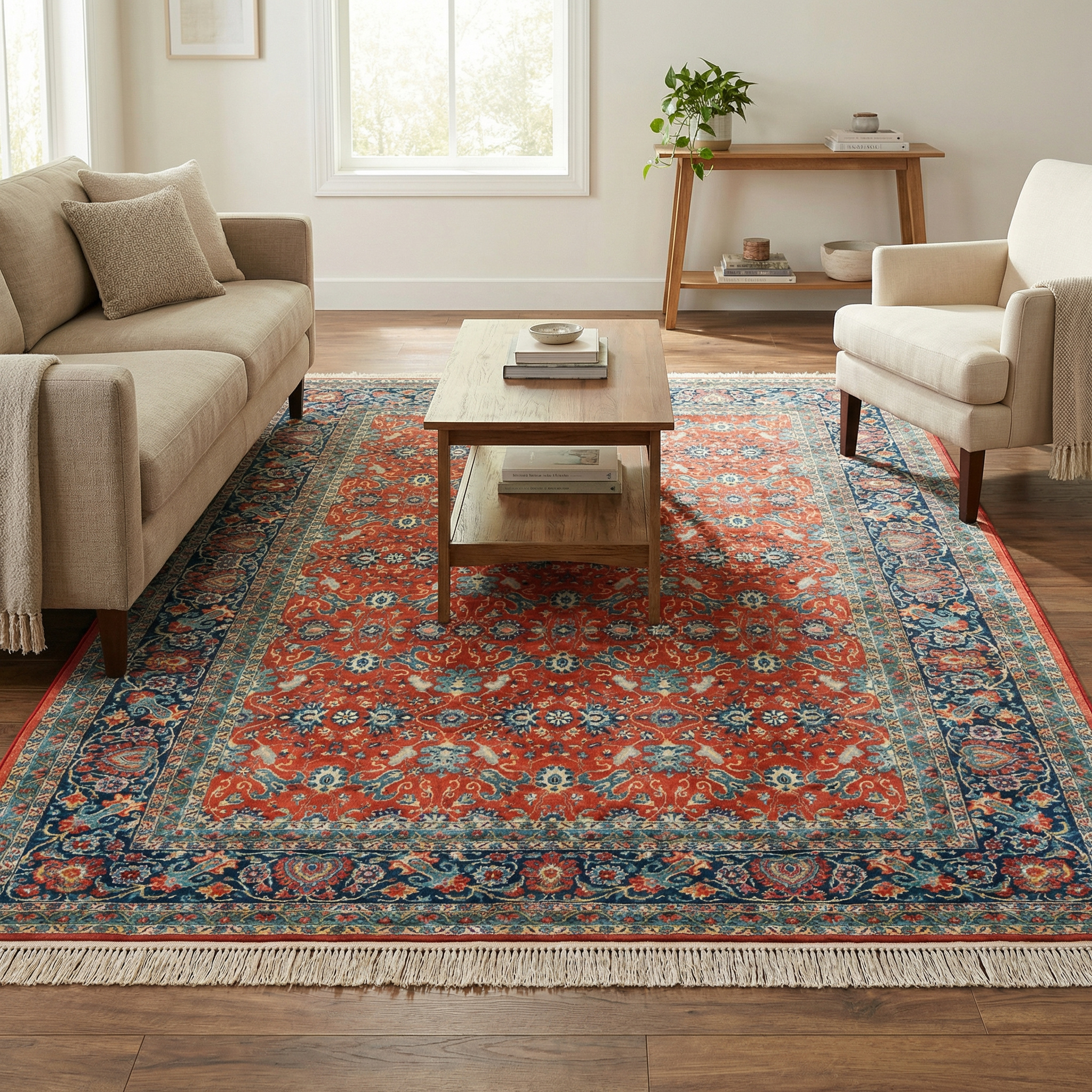 فرش ماشینی سنتی طرح 100356 لاکی 1000 شانه