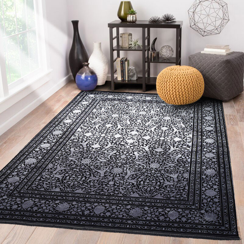 فرش ماشینی طرح آلما کد 101031 زغالی 1500 شانه