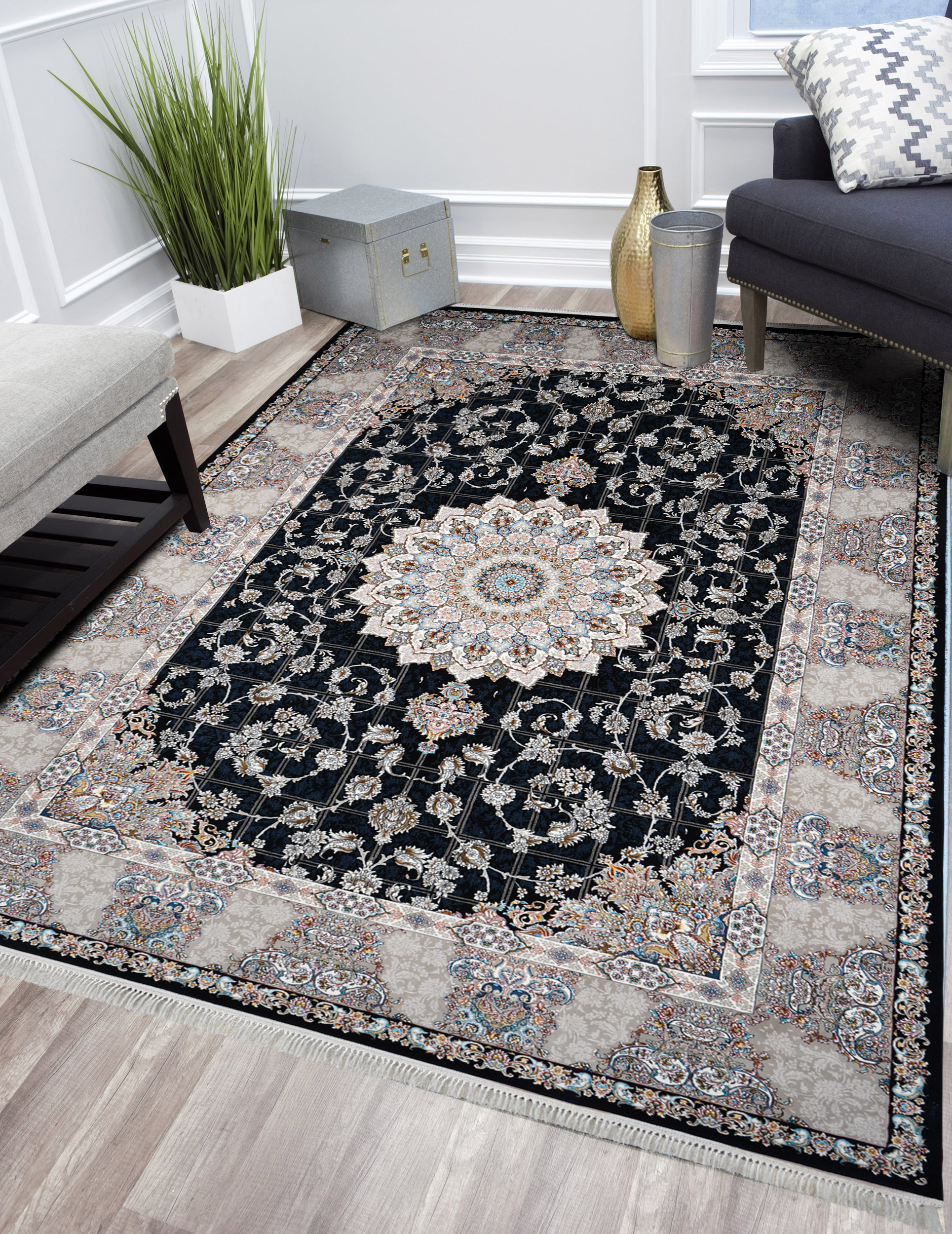 فرش ماشینی طرح پریچه سرمه ای 700 شانه، نقشه جدید با طراحی زیبا است که باعث می شود افرادی که به نقشه های سنتی و دستباف نما علاقه دارند، به سمت این فرش جذب شوند. خیال شما از کیفیت این محصول راحت باشد. فرش محتشم این محصول را تضمین می کند و شما می توانید با بهترین فرش های دستبافت این محصول را مقایسه کنید.