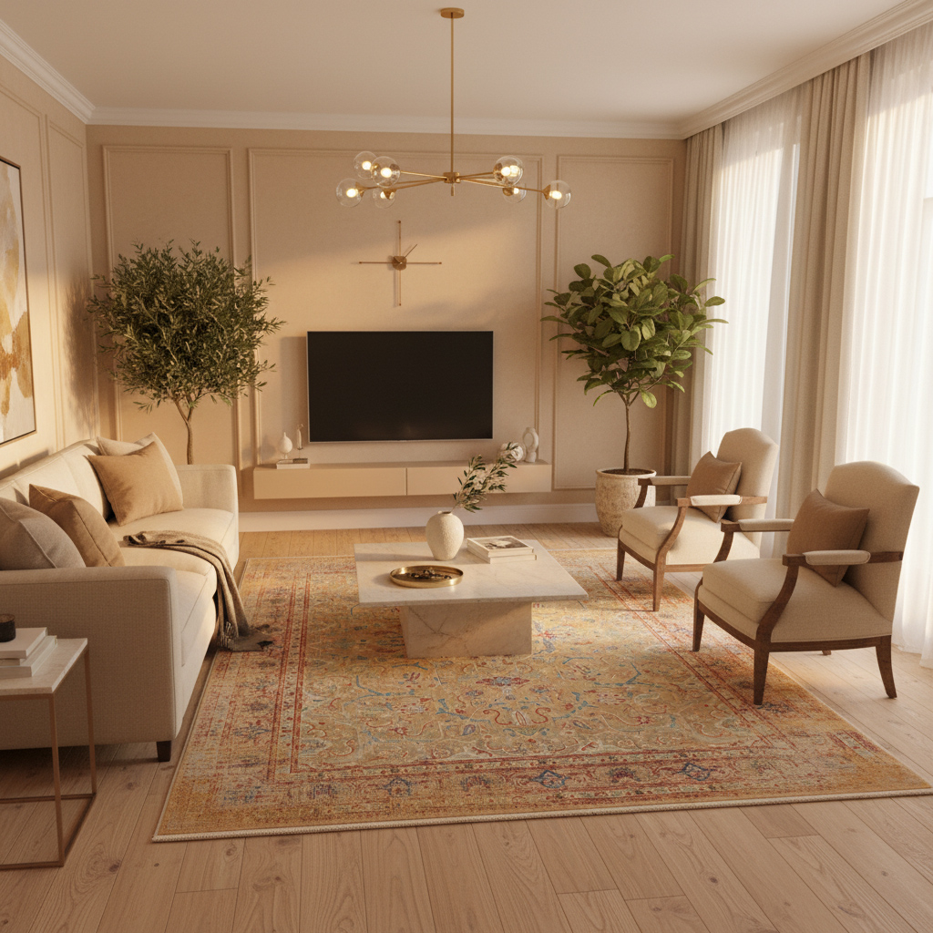 فرش ماشینی طرح 10AY0330 700 طلایی شانه