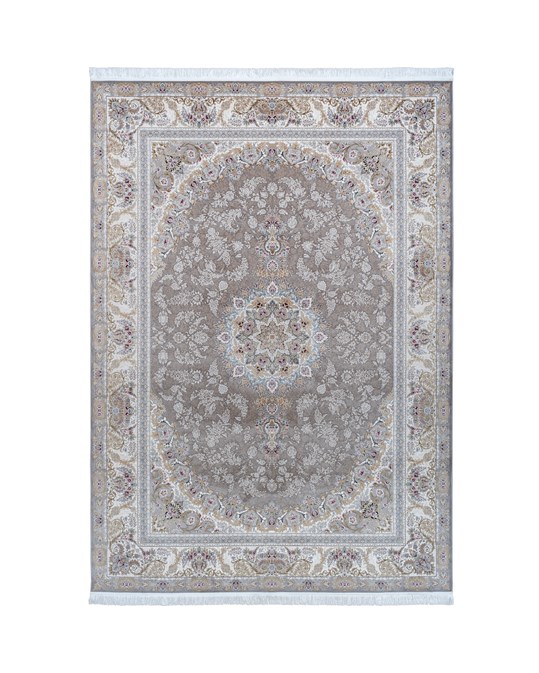 فرش ماشینی طرح 10EL0260 دودی 1200 شانه گل ابریشم