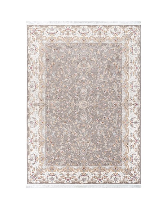 فرش ماشینی طرح 10EL0320 دودی 1200 شانه گل ابریشم
