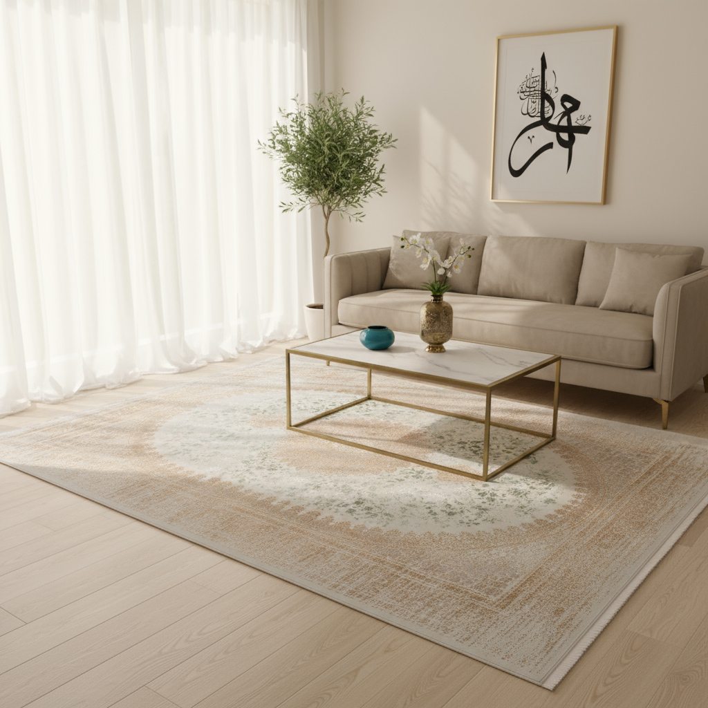 فرش ماشینی طرح 10HA0080 صدفی 700 شانه