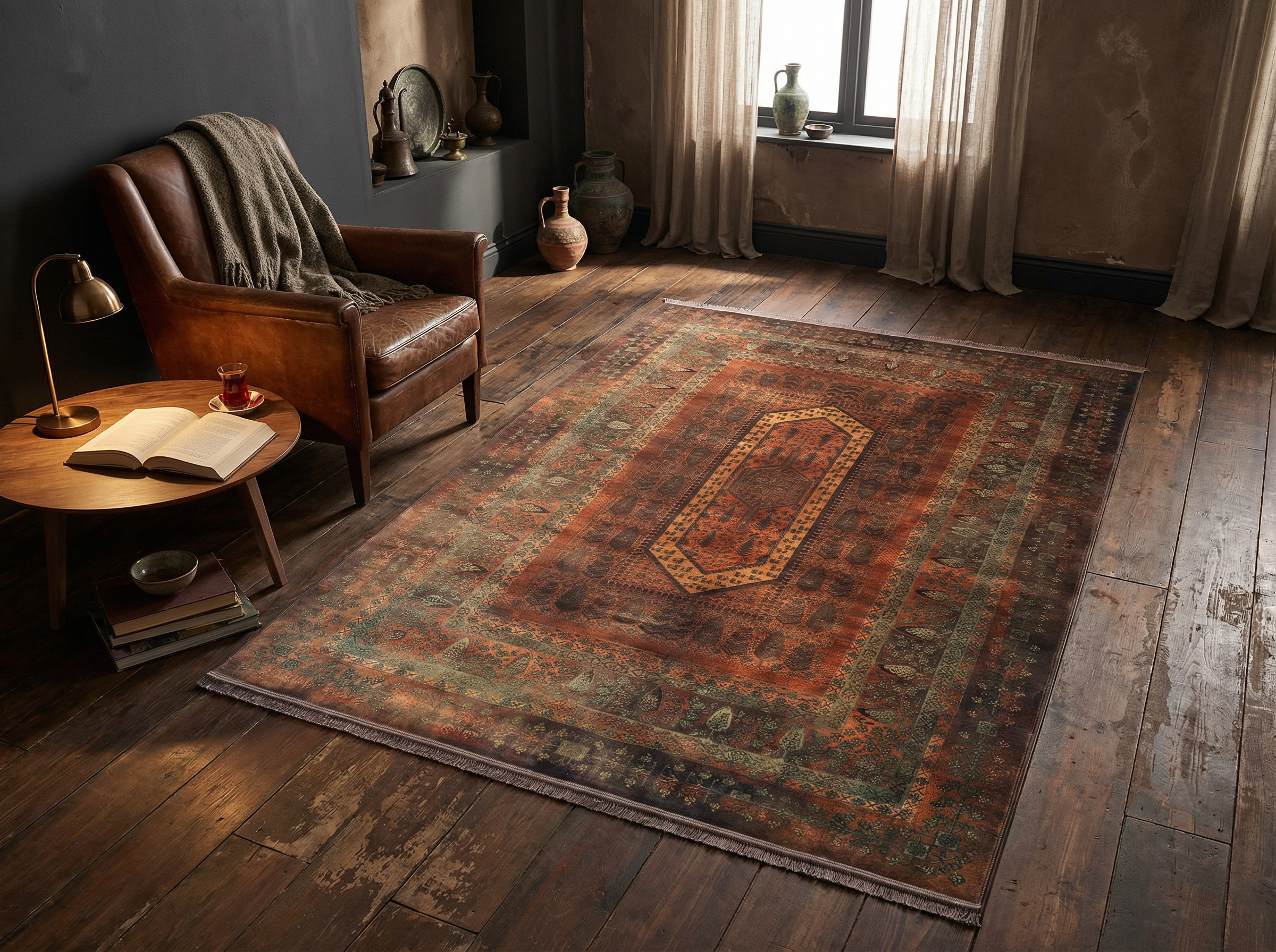 فرش ماشینی هلنا 25NH0040 حنایی معادل 77 رج دستبافت