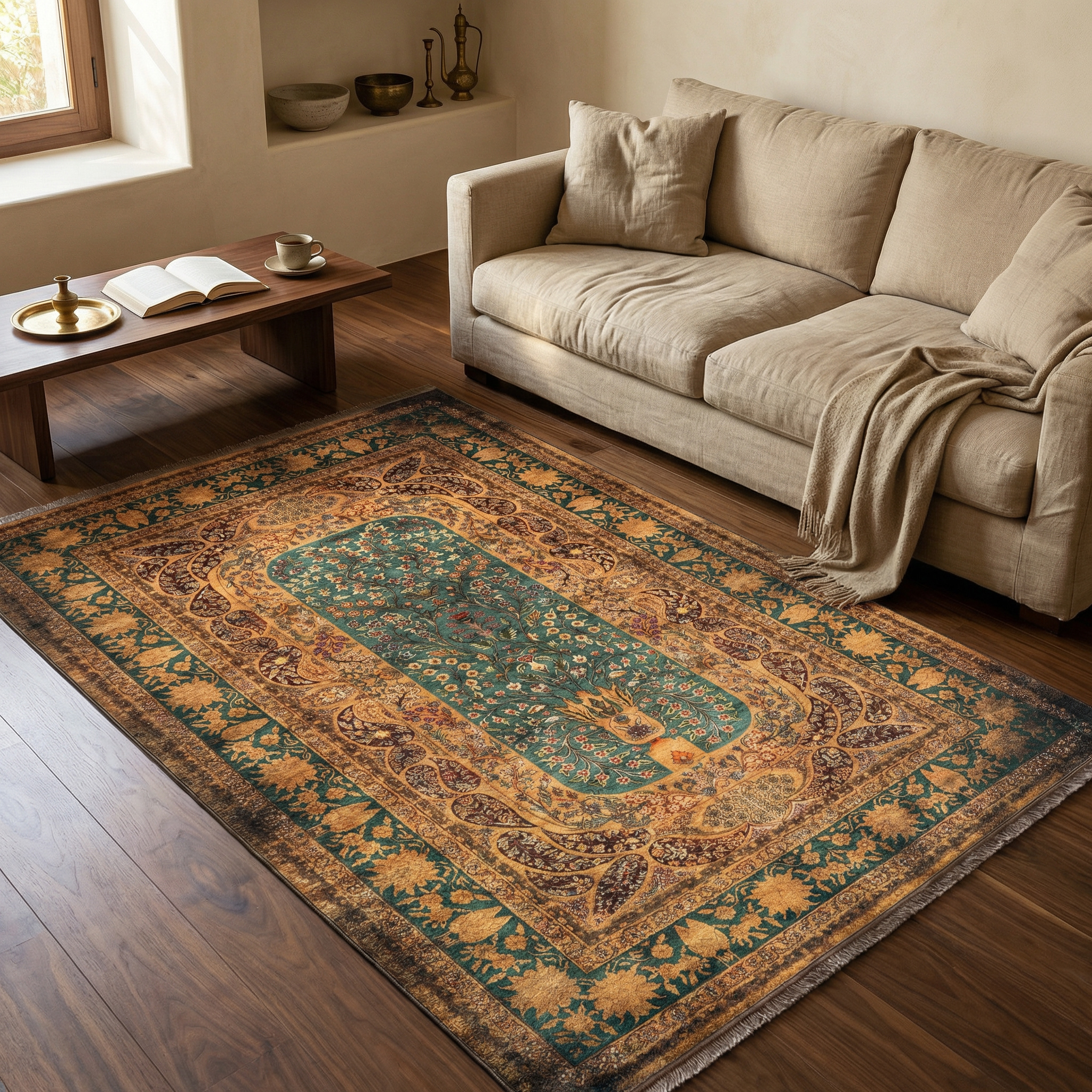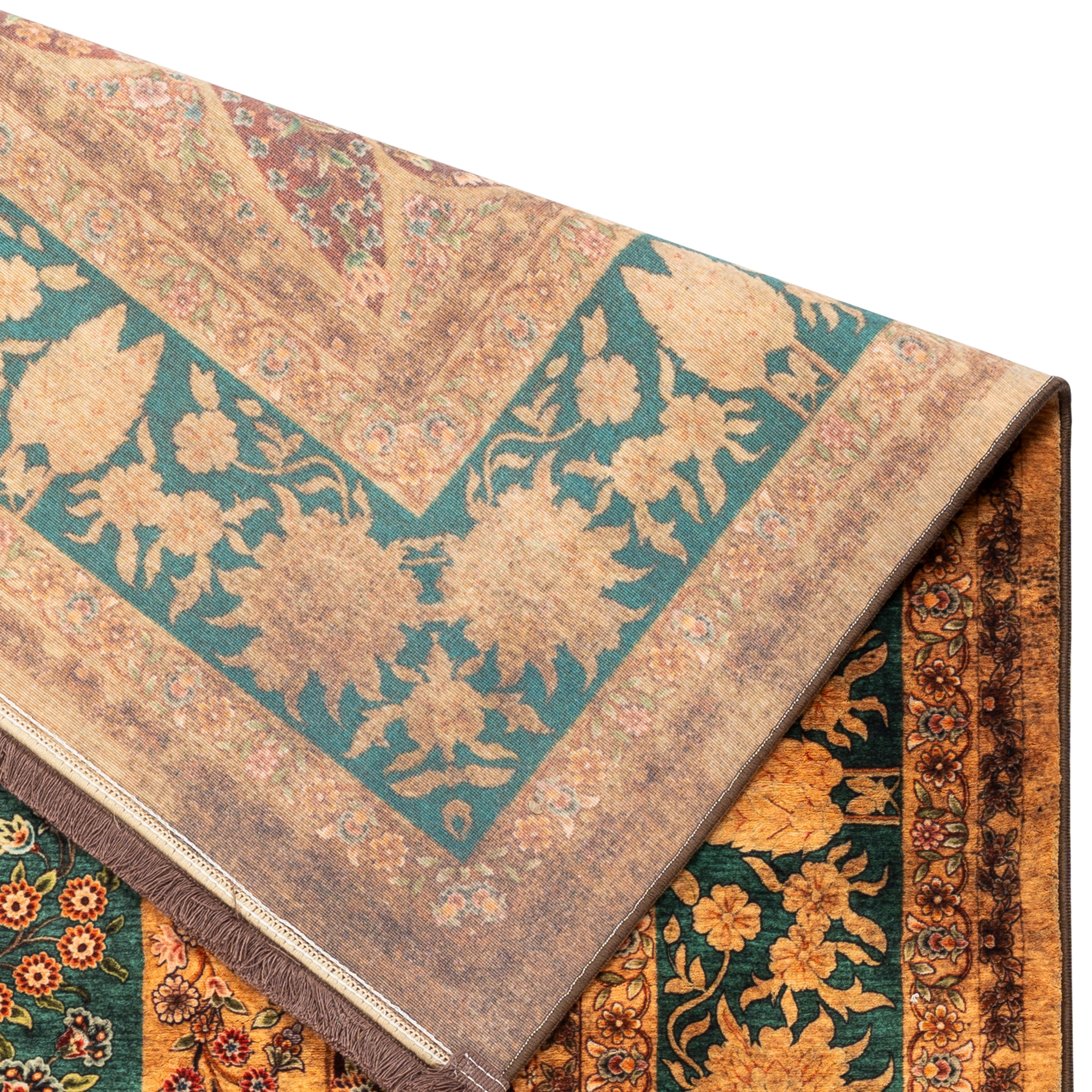 فرش ماشینی هلنا 25NH0060 سبز معادل 77 رج دستبافت