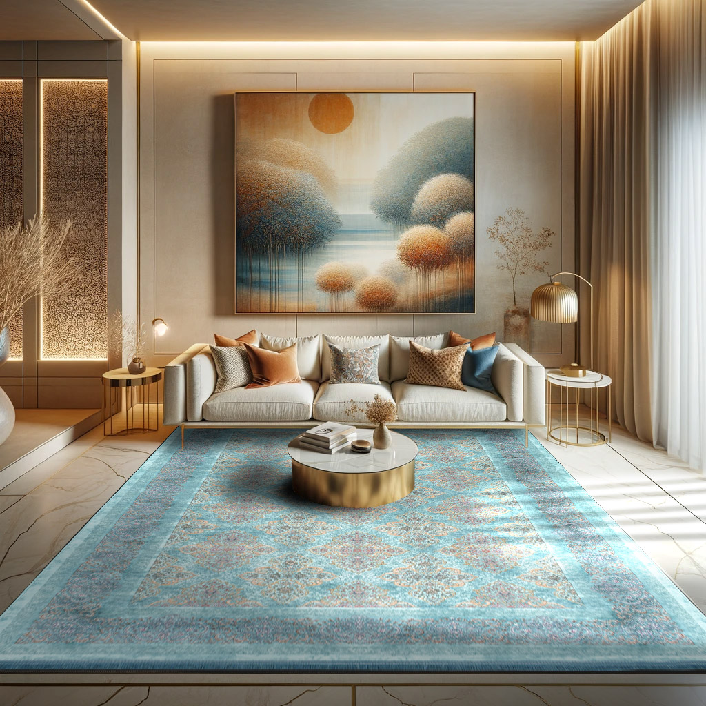 فرش ماشینی وینا طرح 401410 فیروزه ای1200 شانه
