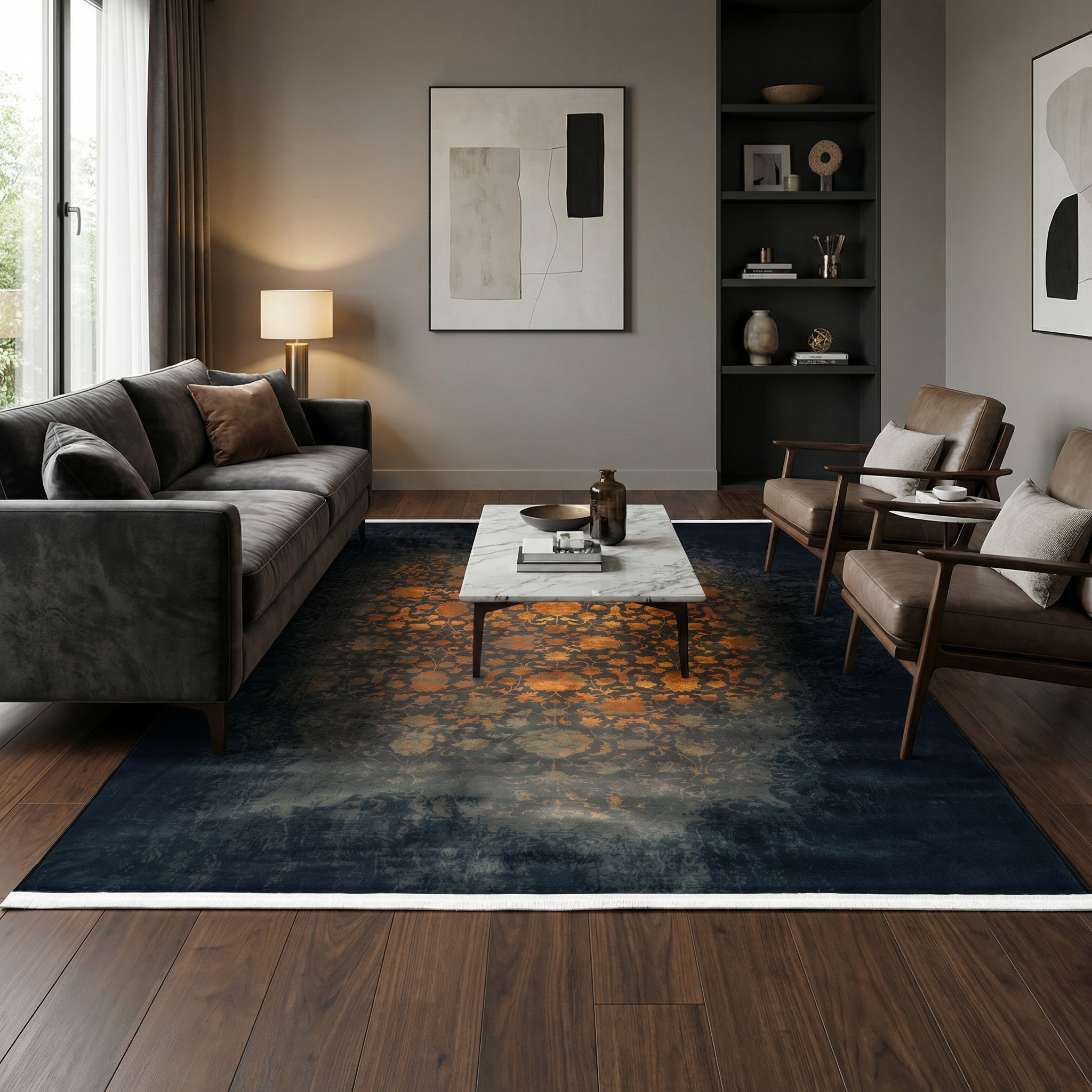 طیفی از رنگهای طلایی و زرد در پس زمینهای تیره، تضادی خیره کننده و حیرت انگیز را به وجود میاورد که مناسب برای فضاهایی با دکوراسیون مدرن و جدید است. فرشهایی که طرح تیره دارند، فضای منزل شما را گرم تر و کوچکتر نشان میدهند. اگر به سبکهای مینیمال علاقمند هستید، این طرح بهترین انتخاب برای فضای منزل شماست. استفاده از المانهایی با رنگهای زرد، طلایی، مشکی و زغالی در چیدمان منزل، جلوهای فوقالعاده به خانه شما خواهد داد.