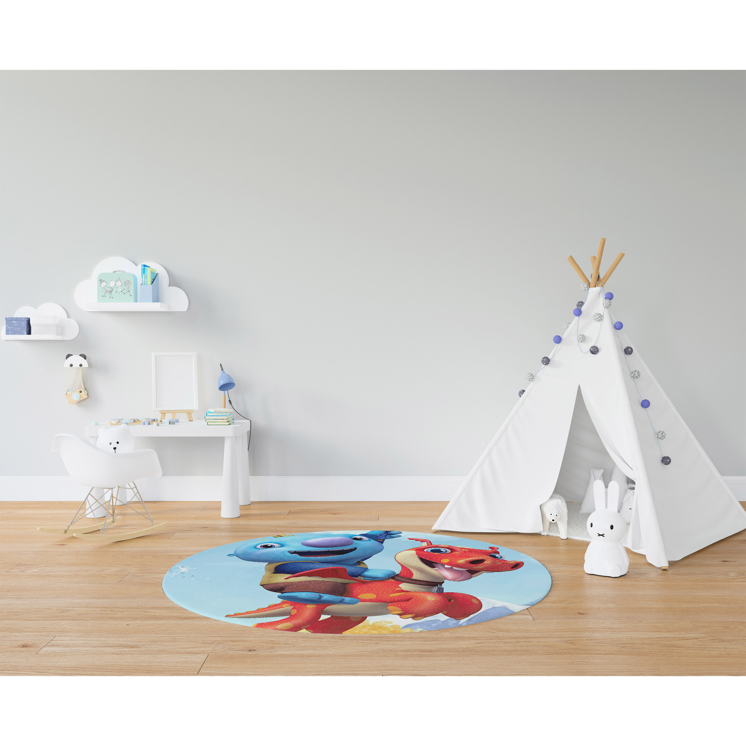 فرش ماشینی گرد کودک طرح اژدها سوار کد 100298 تمام رنگ 700 شانه