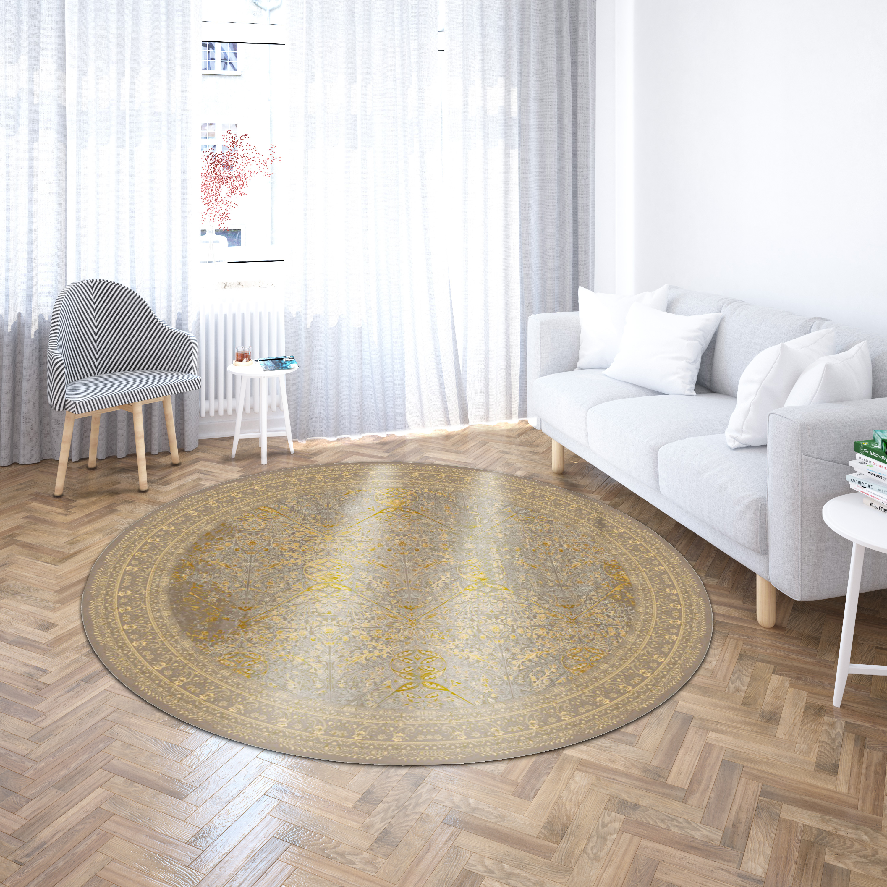 فرش نوستالوژیا گرد کد 300600 خاکستری 1200 شانه