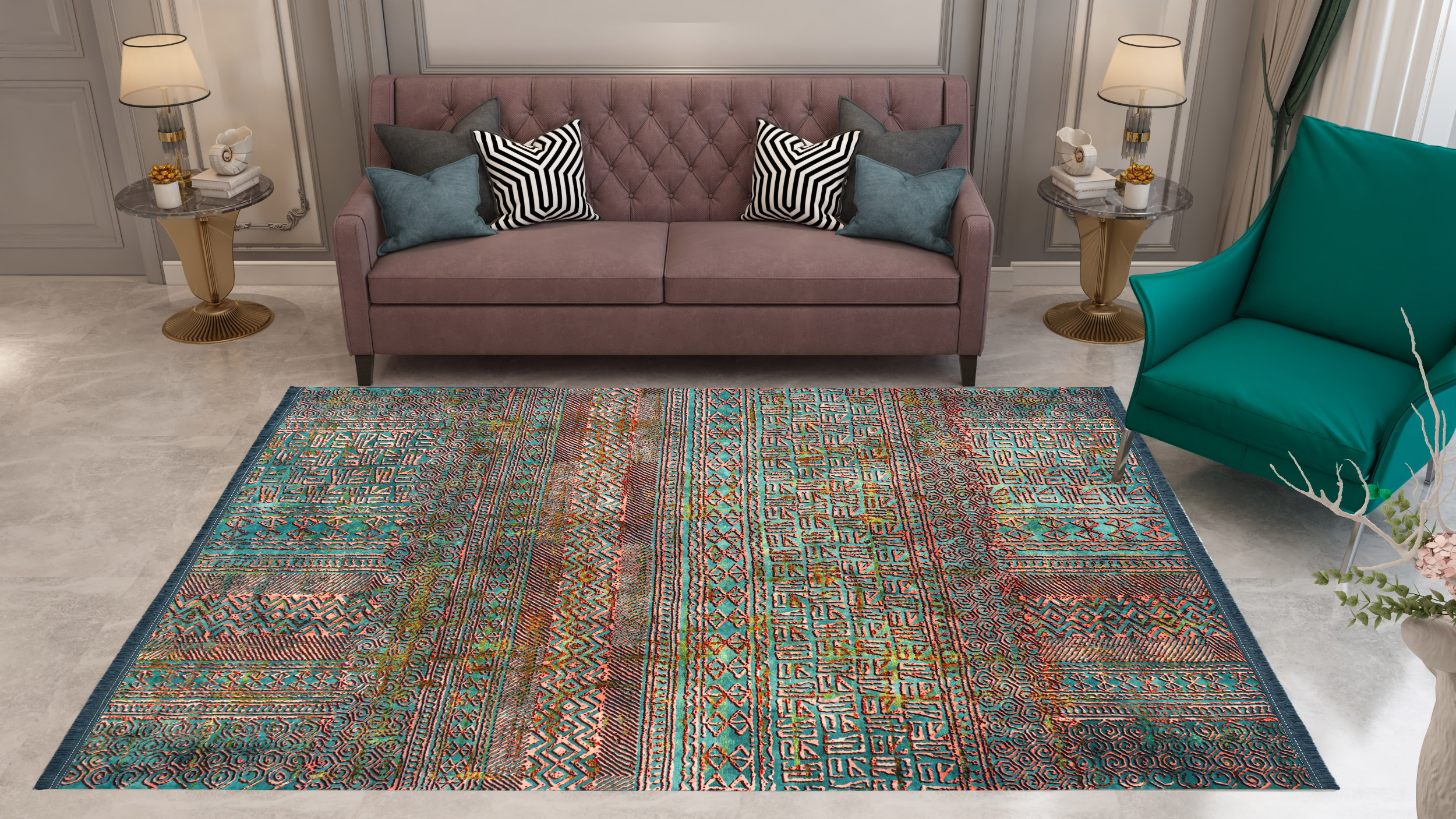 فرش ماشینی مدرن طرح 900434 سبز 1000 شانه
